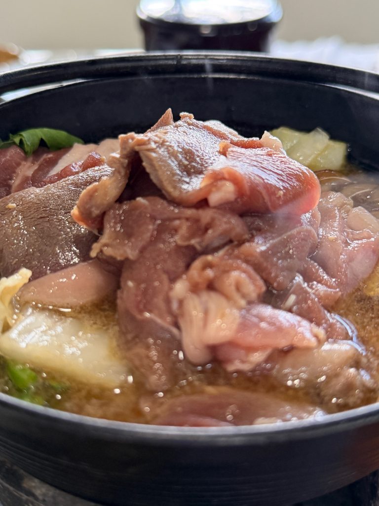 причем в видах, которые в другом месте мне не встречались: сябу сябу из оленя, адское ведьмино стью, в котором ты варишь шматы сырого кабана с грибами, вот это вот всё (с).