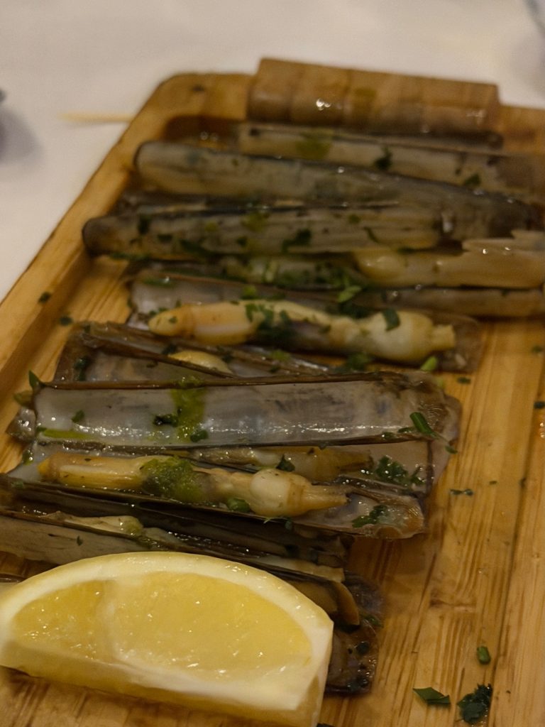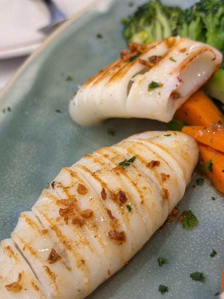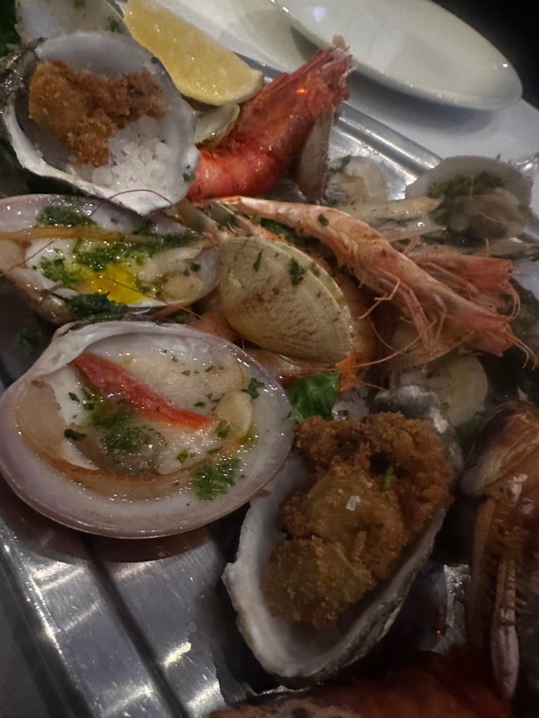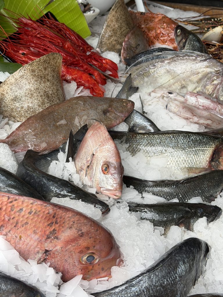 рыбный прилавок оснащенный не только сибасами/дорадами, но соль, ред снэппер, скорпион фиш, да и более редкие породы день ото дня здесь встречаются, плюс ракушки от гребней до рэйзеров, «всё тут есть» (с).