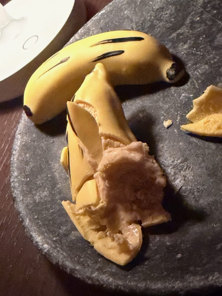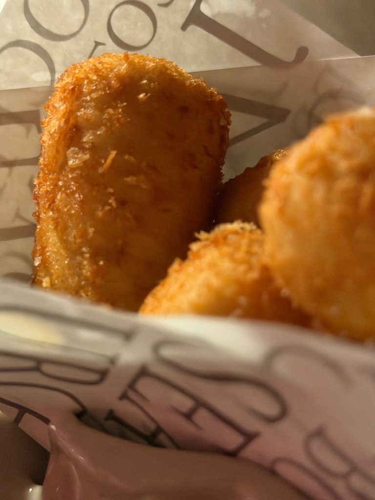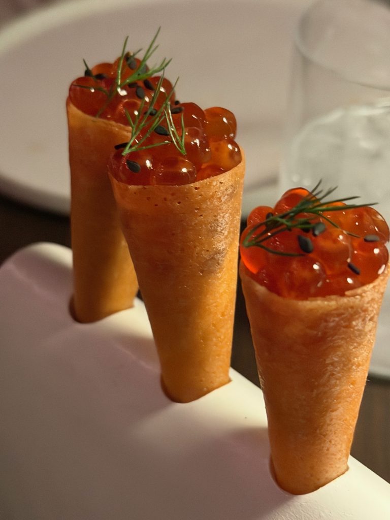 хамон с нори, нелепо выглядевшее, но с хитрой начинкой «мороженное с красной икрой», пара видов шикарных тар таров, куриные крокеты, разложенный в плоскость, но впитавший в себя всю калифорнию, кажется, креветочный коктейль, etc… прям прекрасно!